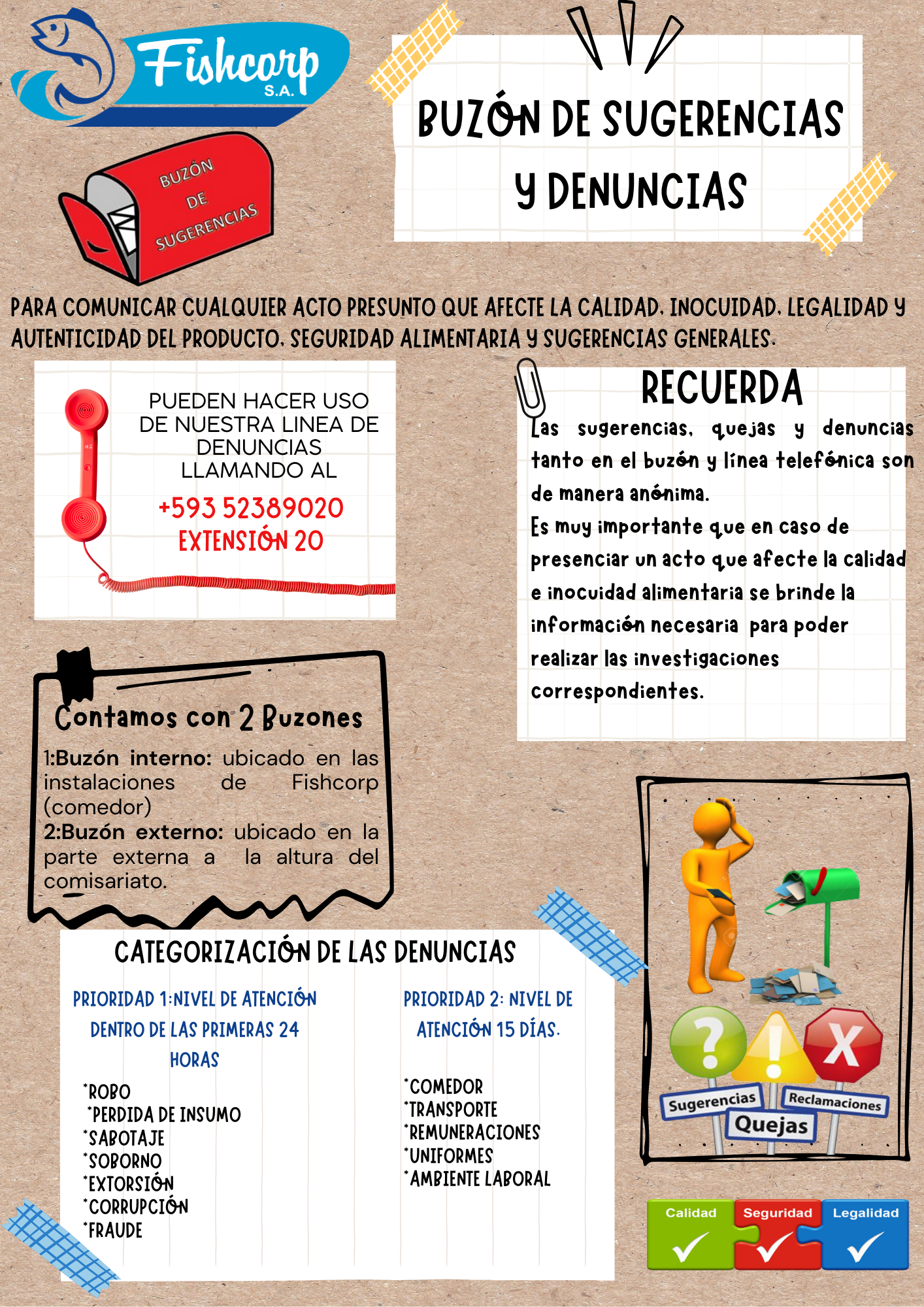 Fishcorp S.A. cumple con la normativa legal interna como planta procesadora de alimentos, entre los entes de control del país en función a la seguridad alimentaria con altos parámetros de calidad y tiene certificación HACCP, FDA, BRCG-IFS Y BSCI.
